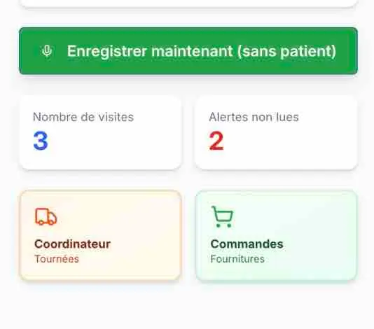 - L'ajout : Une notification automatique envoyée aux aidants/famille (SMS ou Email) : "Votre infirmier(e) vient de terminer sa visite chez Mme Dupont. Tout va bien." (Conditionné à la validation verte).