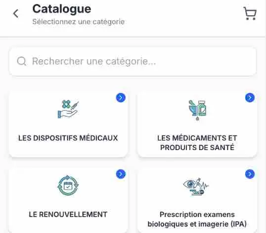 - Points forts : L'utilisation d'icônes rend la recherche rapide. La distinction entre "Dispositifs médicaux", "Médicaments" et "Prescription examens" (IPA - Infirmier en Pratique Avancée ?) suggère que l'app s'adapte aux nouvelles compétences infirmières.